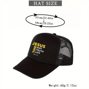 The Jesus The Way The Truth The Life Black Unisex Polyester Cap is a stylish and versatile accessory suitable for adults of any gender. Made from durable polyester material, this cap features a classic black colour and a comfortable one-size design. The design of the cap reflects a religious message with the phrase “Jesus The Way The Truth The Life” embroidered on the front, making it a meaningful and unique addition to any outfit. Perfect for everyday wear or as a statement piece, this cap is a fashionable option for those looking to share their beliefs.
